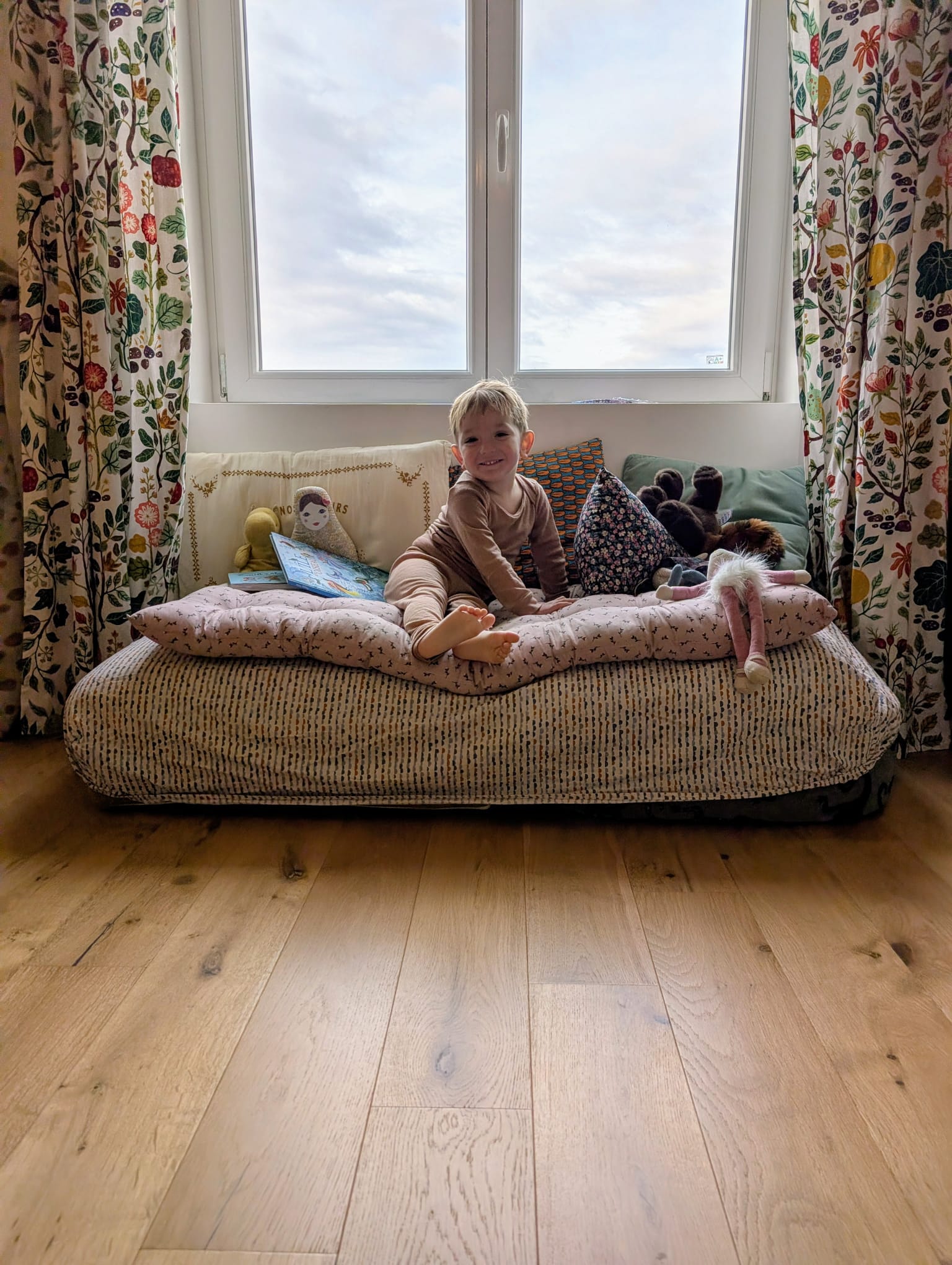 Dans la chambre : parfait pour lire des histoires de super-héros en duo, sans se casser le dos.