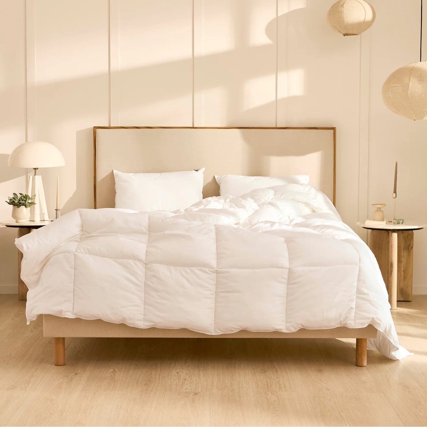 Notre housse est composée d'une toile 100% coton Oeko-Tex tissée dans les Vosges. Son tissage serré lui confère une excellente tenue, une résistance naturelle et un toucher légèrement texturé.