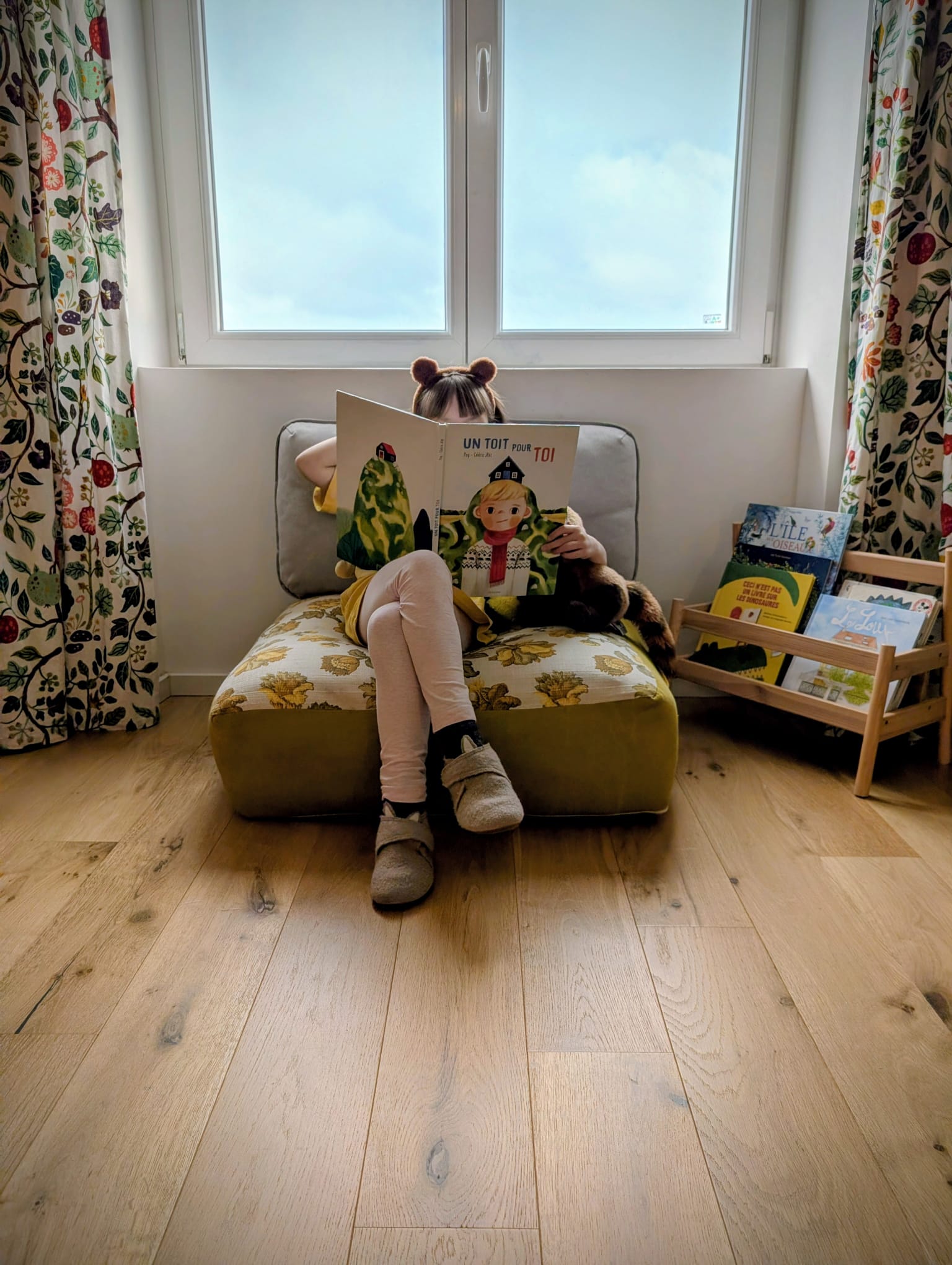 Dans la chambre : parfait pour lire des histoires de super-héros en duo, sans se casser le dos.